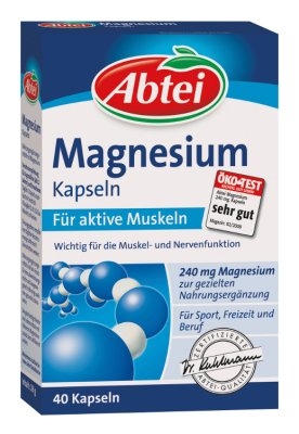 Abtei Magnesium Kapseln Wichtig für die Muskel- und Nervenfunktion Menschen, die im Beruf oder zu Hause oft Stresssituationen ausgesetzt sind, Jugendliche und Leistungssportler können einen erhöhten Bedarf an Magnesium haben, ebenso Schwangere und Stillende. Mit dem regelmäßigen Verzehr von Abtei Magnesium Kapseln stellen Sie die ausreichende Versorgung mit dem lebenswichtigen Mineralstoff Magnesium sicher. Magnesium ist ein essentieller Nährstoff, der in fast allen Zellen vorkommt. Die Hauptaufgabe ist die Aktivierung von mehr als 300 Enzymen, die u. a. beim Energiestoffwechsel Bedeutung haben. Magnesium ist wichtig bei der Muskelkontraktion und der Erregungsübertragung vom Nerv auf den Muskel: in den Beinmuskeln genauso wie im Herzmuskel. Insbesondere durch hohe körperliche Belastung kann es zu einer Magnesium-Unterversorgung kommen, die sich in Muskelkrämpfen äußern kann. Ein erhöhter Bedarf kann bei besonderer Beanspruchung über die Nahrung z. T. nicht gedeckt werden.