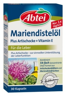 Abtei Mariendistelöl Plus Artischocke + Vitamin E Kapseln, 30 St