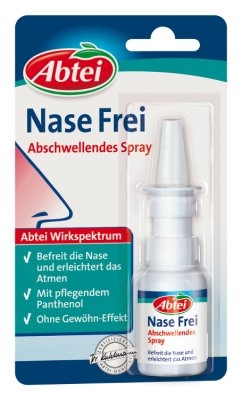 Abtei Nase Frei Abschwellendes Spray Befreit die Nase und erleichtert das Atmen. Mit pflegendem Panthenol. Eine verstopfte Nase ist ein typisches Symptom von Schnupfen. Die Nasenschleimhaut ist geschwollen und man bekommt nicht mehr genug Luft durch die Nase ein unangenehmes Gefühl! Abtei Nase Frei Spray wirkt abschwellend bei verstopfter Nase. Die hypertone Rezeptur von Abtei Nase Frei entzieht der Nasenschleimhaut auf natürliche Weise überschüssiges, wässriges Sekret und lässt so die Nasenschleimhaut abschwellen, ohne diese auszutrocknen. Darüber hinaus wird die natürliche Reinigungsfunktion der Nase unterstützt, so dass Krankheitserreger oder auch Staub und Pollen besser aus der Nase gespült werden. Abtei Nase Frei dient zur Abschwellung, Reinigung und Befeuchtung der Nasenhöhle bei trockener, verstopfter und entzündeter Nase. Anwendungsgebiete: Abtei Nase Frei dient zur Abschwellung, Reinigung und Befeuchtung der Nasenhöhle bei trockener, verstopfter und entzündeter Nase.