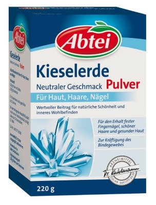 Abtei Kieselerde geschmacksneutral Pulver Wertvoller Beitrag für natürliche Schönheit und inneres Wohlbefinden Neutraler Geschmack Für Haut, Haare, Nägel und Bindegewebe strong>Was ist Kieselerde?Was ist Kieselerde? Kieselerde ist ein reines Naturprodukt aus urgeschichtlichen Meeresablagerungen. Hauptbestandteil der Kieselerde ist Kieselsäure, die das wichtige Spurenelement Silicium enthält. Wichtige Funktionen für den Organismus Silicium kommt im Körper vor allem in den Zellen von Haut, Haaren, Nägeln, Bindegewebe, Knochen und Knorpeln vor und ist dort wichtig für eine gesunde Struktur und festen Halt. Silicium unterliegt im Körper aber naturgemäß einem Abbauprozess. Eine unzureichende Silicium-Zufuhr kann zu Nagelbrüchigkeit und Störungen beim Haarwachstum führen. Auch die Elastizität und Spannkraft des Bindegewebes und der Haut können beeinträchtigt werden. Kieselerde für gesunde Schönheit Die regelmäßige Anwendung von Abtei Kieselerde Pulver beugt brüchigen Haaren und Nägeln vor und kräftigt das Bindegewebe von innen heraus.