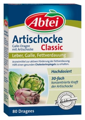 Abtei Galle Dragees mit Artischocke Classic Fördert aktiv die Fettverdauung durch Unterstützung der Leber- und Galletätigkeit. Hochdosiert 30-fach konzentrierte Kraft der Artischocke Fettreiche Ernährung belastet den Organismus 2-fach. Zum einen wird das Leber-Galle-System bei der Verdauung der Fette besonders gefordert, und zum anderen kann eine fettreiche Ernährung zu Völlegefühl und krampfartigen Magen-Darm-Beschwerden führen. Um Fette in der Nahrung verdauen zu können, benötigt der Organismus Gallenflüssigkeit, die von der Leber produziert wird. Funktioniert das Leber-Galle-System nicht optimal, kann das Fett nicht richtig verdaut werden und so den Organismus belasten. Der pflanzliche Wirkkomplex der Artischocke regt das Leber-Galle- System an, vermehrt Gallenflüssigkeit auszuschütten und so die Verdauung von unbekömmlichen Fetten zu erleichtern. Dadurch kann die Verdauung durch Anregung des Gallenflusses aktiv unterstützt werden. Abtei Galle-Dragee mit Artischocke enthält den 30-fach konzentrierten Wirkstoffkomplex der Artischockenblätter zur gezielten Unterstützung des Leber-Galle-Systems.