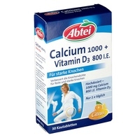Nahrungsergänzungsmittel sind kein Ersatz für eine abwechslungsreiche und ausgewogene Ernährung sowie eine gesunde Lebensweise. Anwendungsgebiete: Calcium ist ein wesentlicher Bestandteil unserer Knochen und trägt dazu bei, dass unser Knochengerüst fest, stabil und gesund bleibt. Ab dem 30. Lebensjahr nimmt jedoch die Knochendichte und damit die Stabilität der Knochen kontinuierlich ab. Daher ist es wichtig, frühzeitig die Knochen durch die regelmäßige bzw. tägliche Zufuhr mit Calcium und Vitamin D3 zu stärken. Calcium ist essentiell für den Knochenaufbau und die Stärkung der Knochen. Vitamin D3 steuert die Calciumaufnahme und die Optimale Einlagerung in die Knochen. Abtei Osteo Vital - die empfohlene Dosierung nach aktuellen ernährungswissenschaftlichen Erkenntnissen mit 1000 mg Calcium + 20 µg Vitamin D3 verbessert die Knochendichte für feste und starke Knochen bis ins hohe Alter erhält die Beweglichkeit nur 1x täglich Abtei Osteo Vital - Starke Knochen für ein Leben mit Schwung. Nahrungsergänzungsmittel mit Calcium und Vitamin D3 Nährwertangaben pro Kautablette % der empf. Tagesdosis pro Kautablette* Calcium 1000 mg 125% Vitamin D3 20 µg 400% *gem. Nährwert-Kennzeichnungsrichtlinie der EU Mit Süßungsmittel Verzehrsempfehlung: Täglich eine Tablette. Die angegebene empfohlene tägliche Verzehrsmenge darf nicht überschritten werden. Kann bei übermäßigen Verzehr abführend wirken. Zutaten: Calciumcarbonat; Süßungsmittel Sorbit; ganz gehärtetes pflanzliches Öl (Raps); Aroma; Trennmittel Magnesiumsalze der Speisefettsäuren; teilweise gehärtetes pflanzliches Öl (Palmkern, Kokos, Raps); Vitamin D3 Glutenfrei, ohne Milchzucker Nettofüllmenge: 113 g Aufbewahrung: Vor Wärme und Sonneneinstrahlung schützen. Hersteller: Abtei OP Pharma GmbH Abtei 1 37696 Marienmünster
